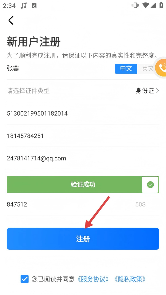 4、填写完所有注册信息,勾选同意协议后点击【注册】,完成新用户注册操作。