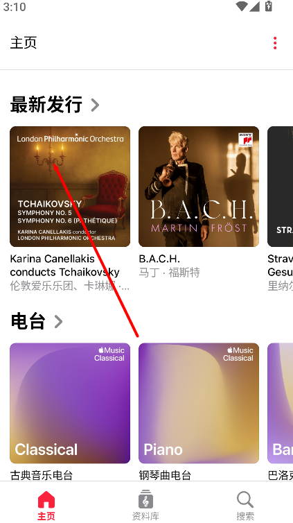 1、在主界面可浏览最新发行的古典乐歌单,了解近期上架的精选专辑与乐曲。