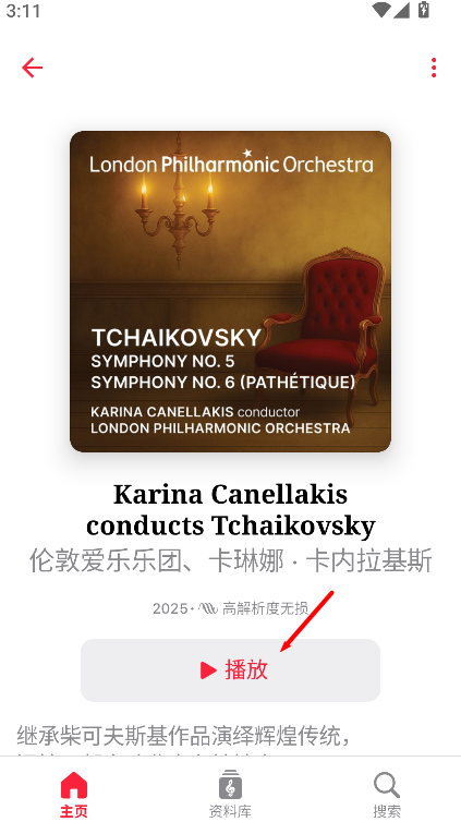 3、点击播放按钮即可开始播放,享受高音质的古典音乐体验,并可切换或收藏喜爱的曲目。
