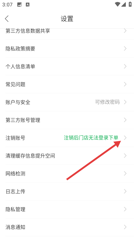3、在设置页面,点击【注销账号】选项,可进入注销账号确认页面。