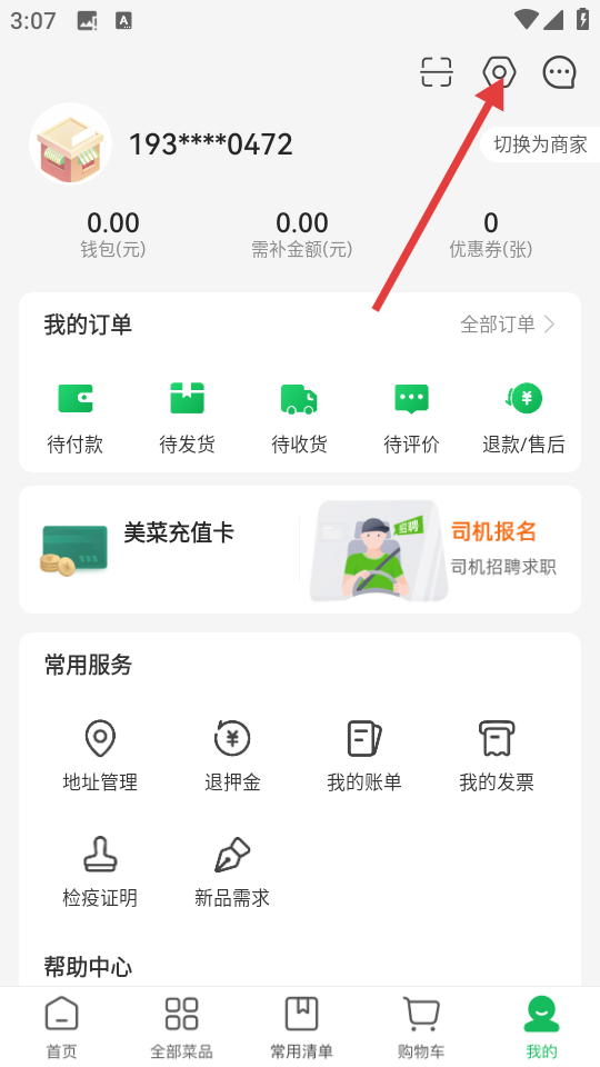 1、在菜品页面中,点击底部【我的】选项,可进入个人中心页面。