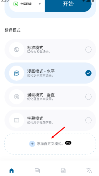 2、可根据个人需求添加自定义翻译模式,设置常用语言或翻译方式,方便下次快速使用。