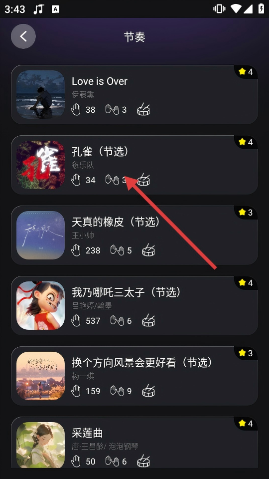 3、在节奏曲目列表页选择目标曲目,进入曲目详情页。
