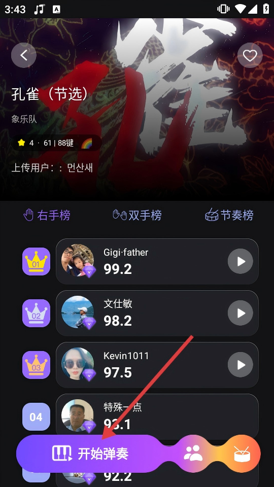 4、在曲目详情页点击【开始弹奏】,开始学习弹奏该节奏曲目。