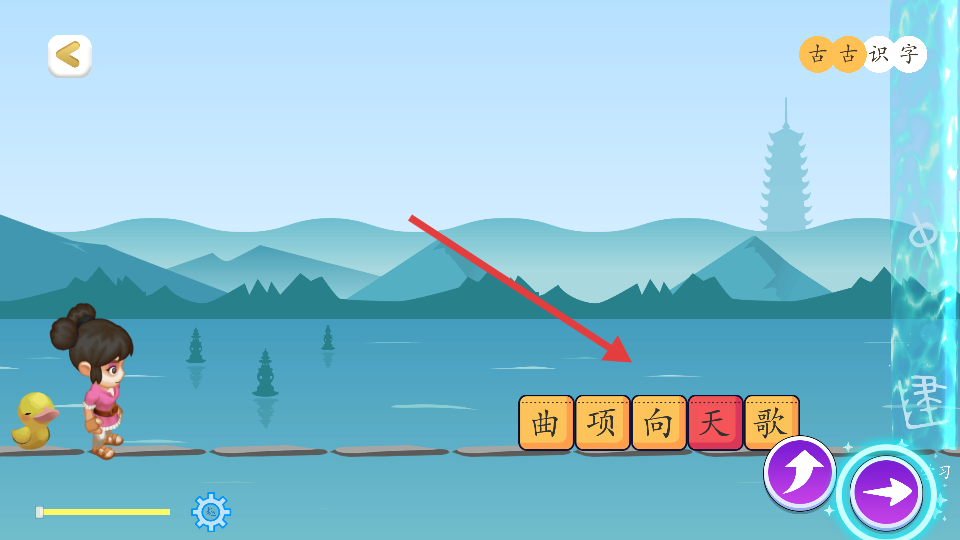 4、在学习页面中,可参与如古诗排序类的互动环节,进行学习。
