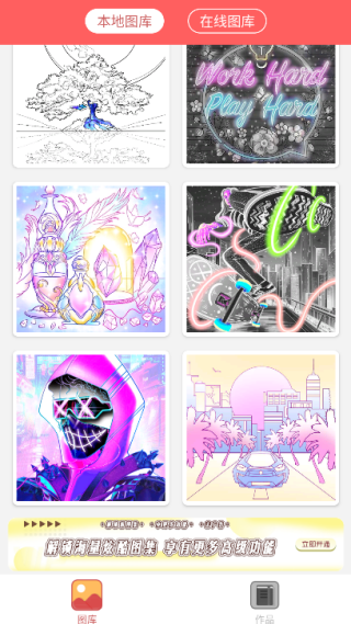 1、打开应用后,在本地图库中选择一张喜欢的图片作为填色素材。