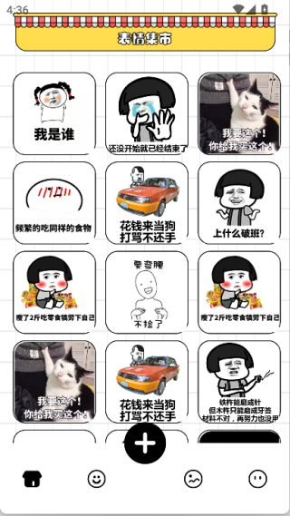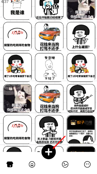 3、返回主界面后,点击底部的“+”号进入自制表情功能界面。