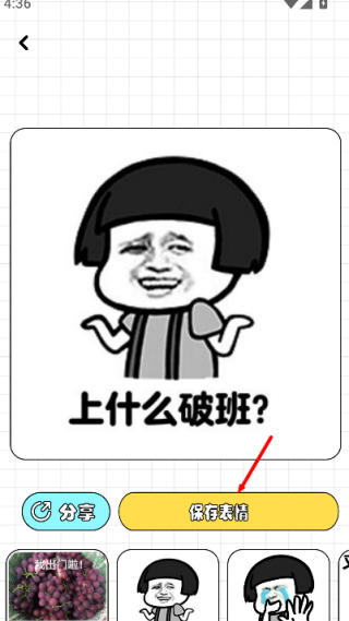 2、在选中目标表情后,点击保存按钮,可将该表情下载至本地收藏中。