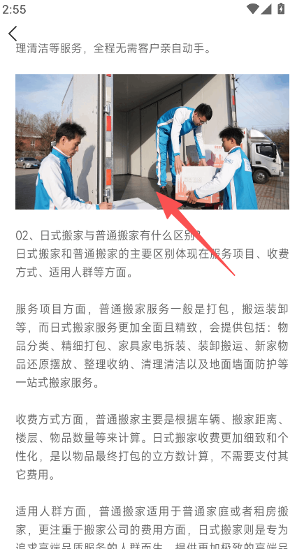 3、内容形式丰富,搭配图文说明,如车型图片、搬家场景图等,让搬家知识更直观易懂,阅读体验佳。