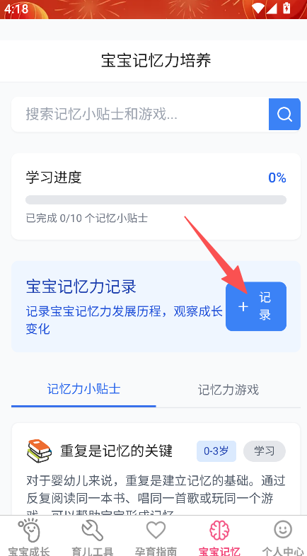 2、拥有记忆力小贴士功能,输出专业育儿知识,帮助家长理解记忆力培养逻辑,科学开展育儿行动。