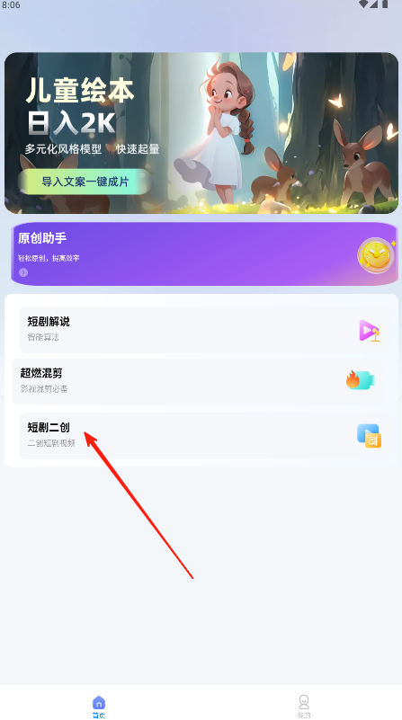 2、登录成功后,在主功能页选择创作方向,例如点击“短剧二创”选项进入制作页。
