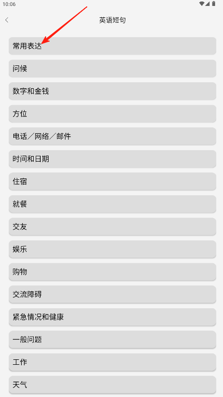 2、在短语分类列表页中,找到指示的“常用表达”分类。