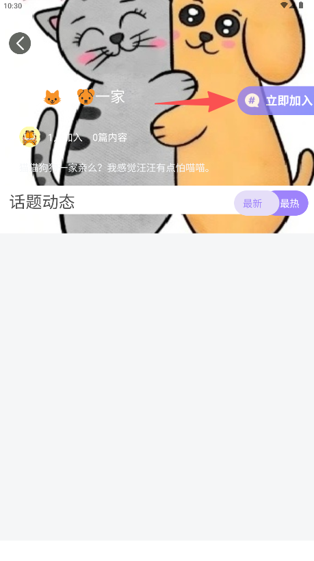 3、进入具体话题页后,可查看话题介绍与动态,点击右上角“立即加入”即可参与该话题。