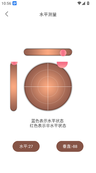 1、打开应用后进入水平测量仪功能,可实时查看水平与垂直角度数据,例如水平:27、垂直:-88,帮助判断物体是否处于平衡状态。