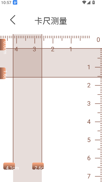 2、切换至卡尺功能,可通过屏幕滑动或摄像辅助方式进行物体尺寸测量,适合用于测量长度、宽度等精确数值。