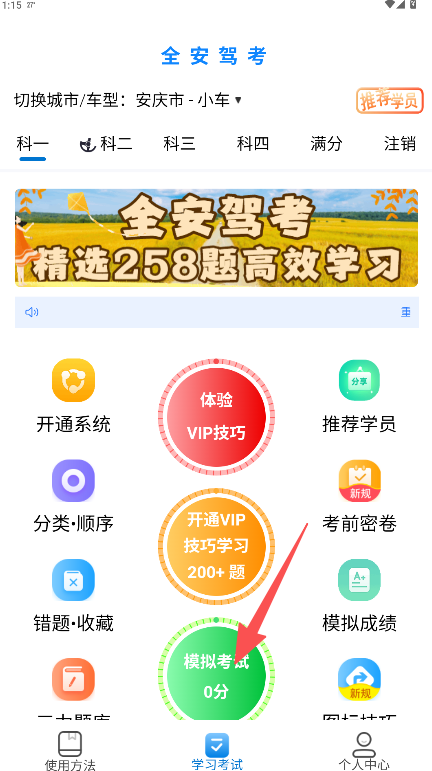 《全安驾考》是一款专注于驾考学习的辅助软件。其核心特色是提供覆盖科目一到科目四的系统化学习内容,满足不同阶段考生的备考需求。软件亮点在于技巧学习功能,通过精讲高频题目,帮助考生快速掌握答题要点。优势在于功能全面实用,包含模拟考试、错题收藏、考前密卷等模块,形成完整的学习闭环。界面设计清晰,城市车型可自由切换,学习路径明确,有效提升备考效率与考试通过率。