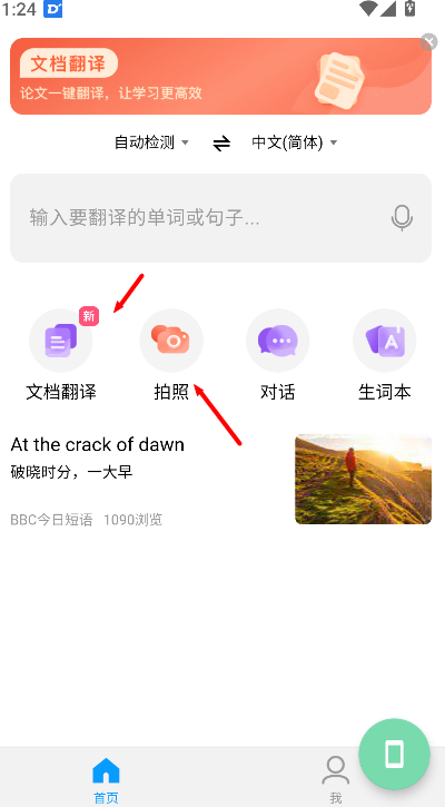 3、支持文档翻译与拍照翻译两种方式,可上传文件或直接拍摄图片识别文字,实现高效便捷的多语种翻译操作。