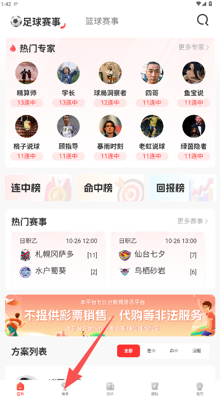 3、集成个人关注与收藏管理模块,可关注特定专家或收藏重要赛事便于快速查看最新动态。