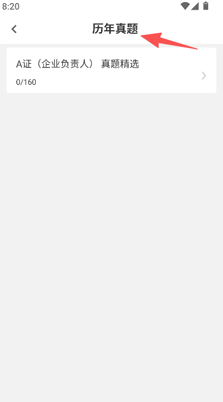 1、打开软件,进入历年真题板块,选择A证(企业负责人)真题精选。