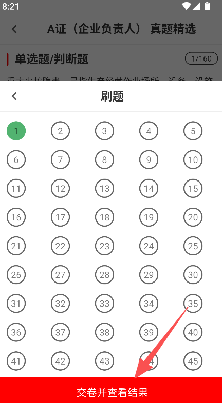 3、实现刷题交卷功能,完成题目后交卷并查看结果,模拟考试流程,提升安全员应试能力。
