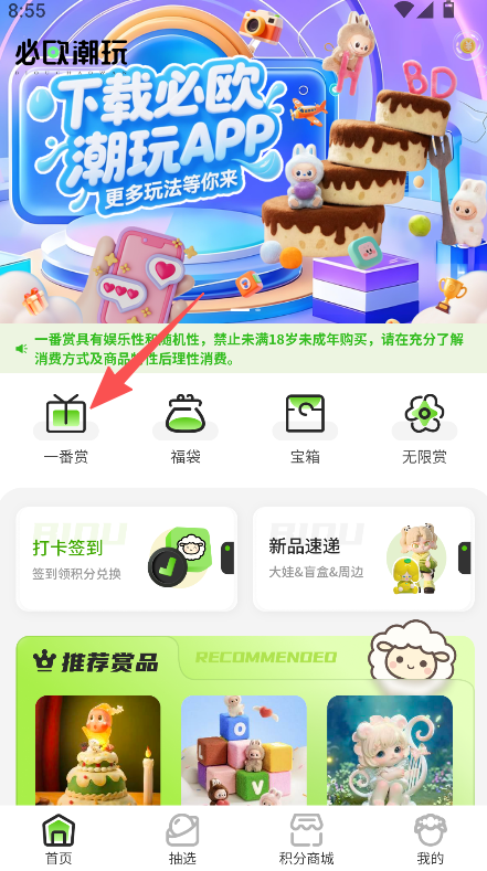 2、整合潮玩体验与福利体系,在提供一番赏等玩法的同时,设置打卡签到积分福利,增强用户参与感与粘性,让潮玩体验更具吸引力。