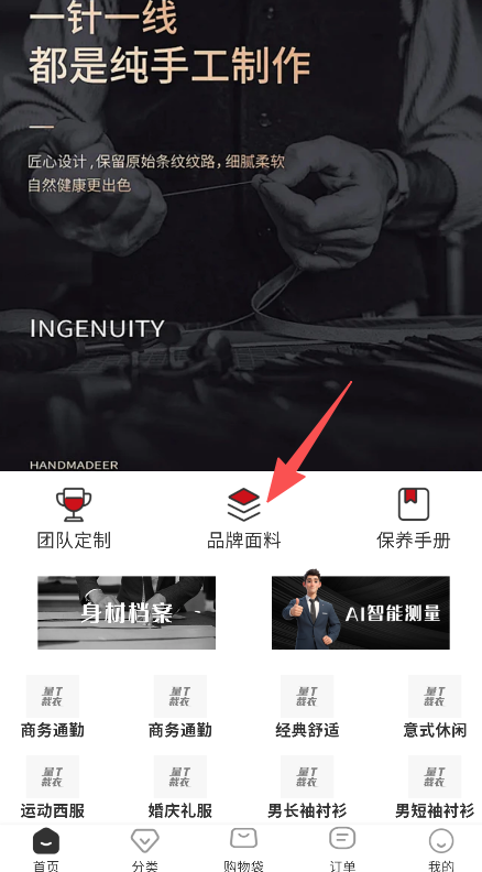 3、整合定制全环节服务,从面料认知、身材测量到风格选择,再到保养手册,形成完整的定制服务链,让用户在定制过程中感受专业与连贯。