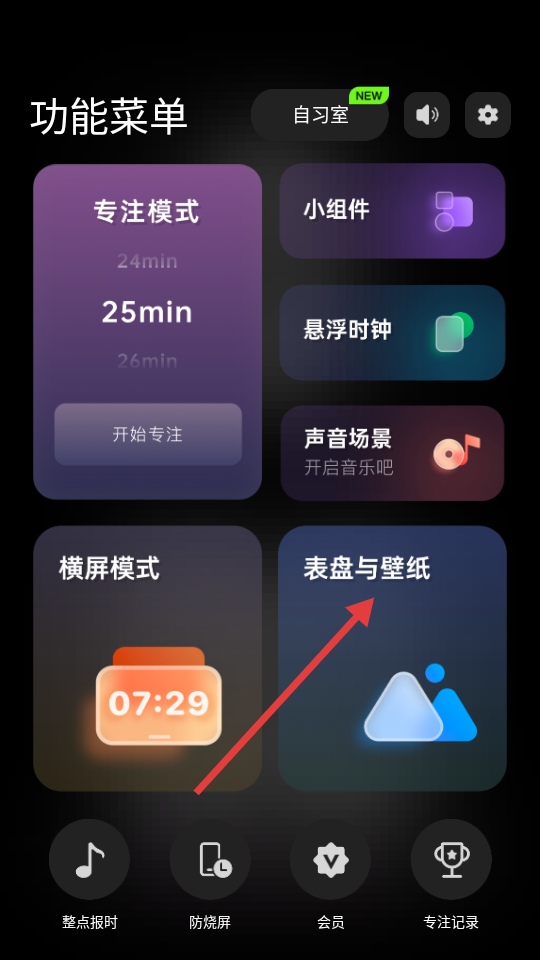 2、在软件功能菜单页面,点击【表盘与壁纸】选项,可进入表盘与壁纸设置页面。