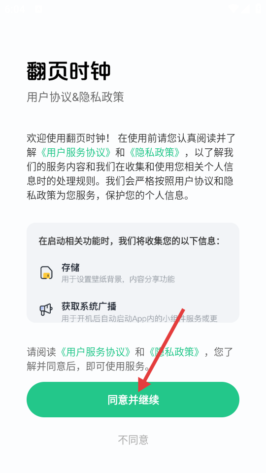 1、阅读并同意用户协议和隐私政策,点击【同意并继续】按钮即可进入软件。