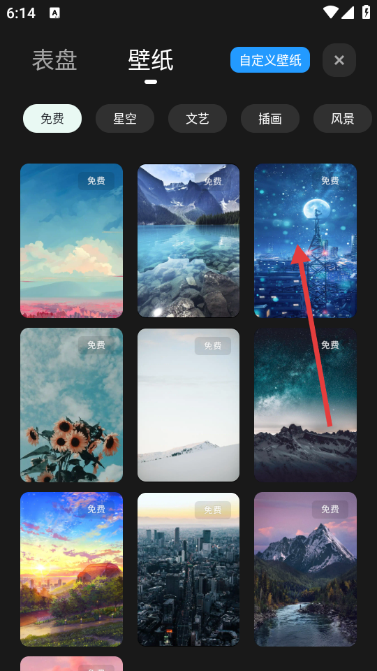 3、在壁纸设置页面,选择喜欢的壁纸风格,如星空类壁纸,可进入壁纸预览页面。