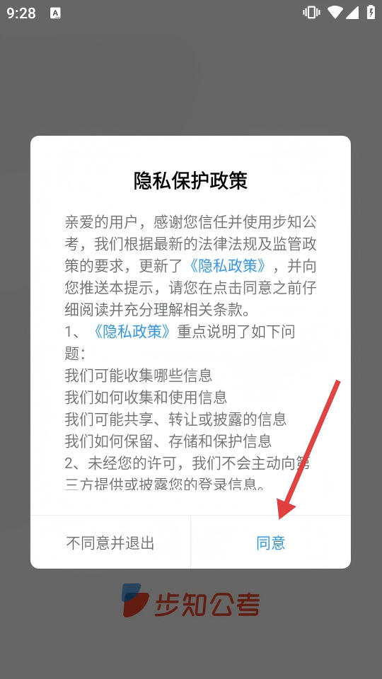 1、在隐私保护政策弹窗中点击【同意】,进入登录页面。