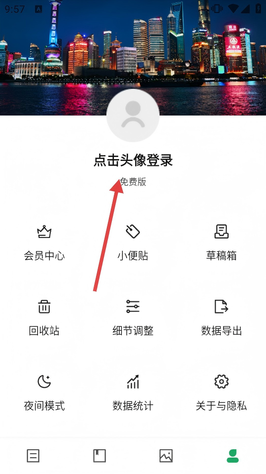2、在个人页面点击【点击头像登录】,进入登录注册页面。