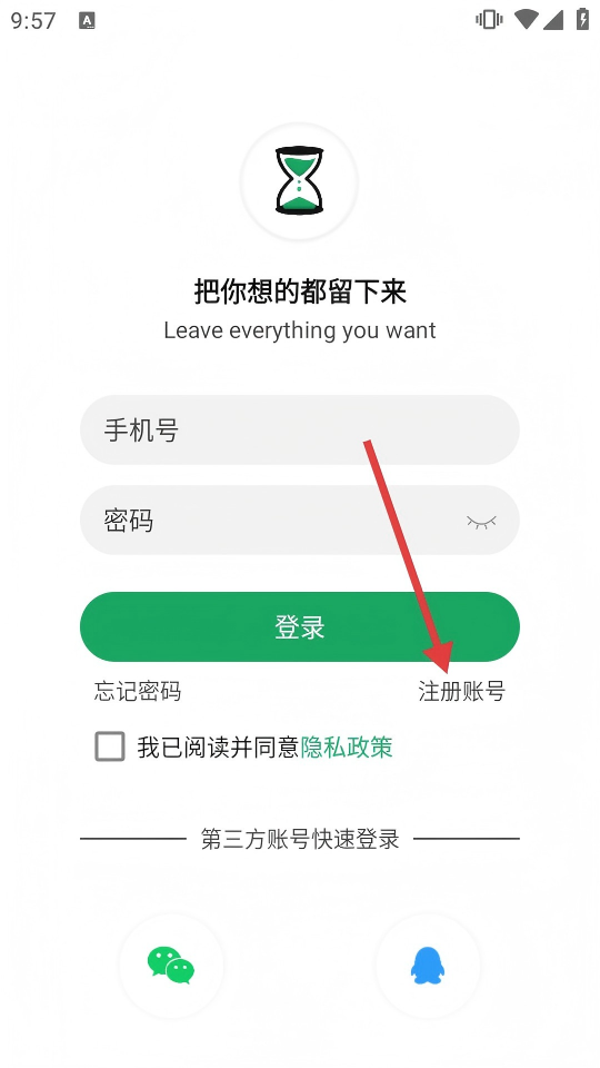 3、在登录注册页面点击【注册账号】,进入注册页面。