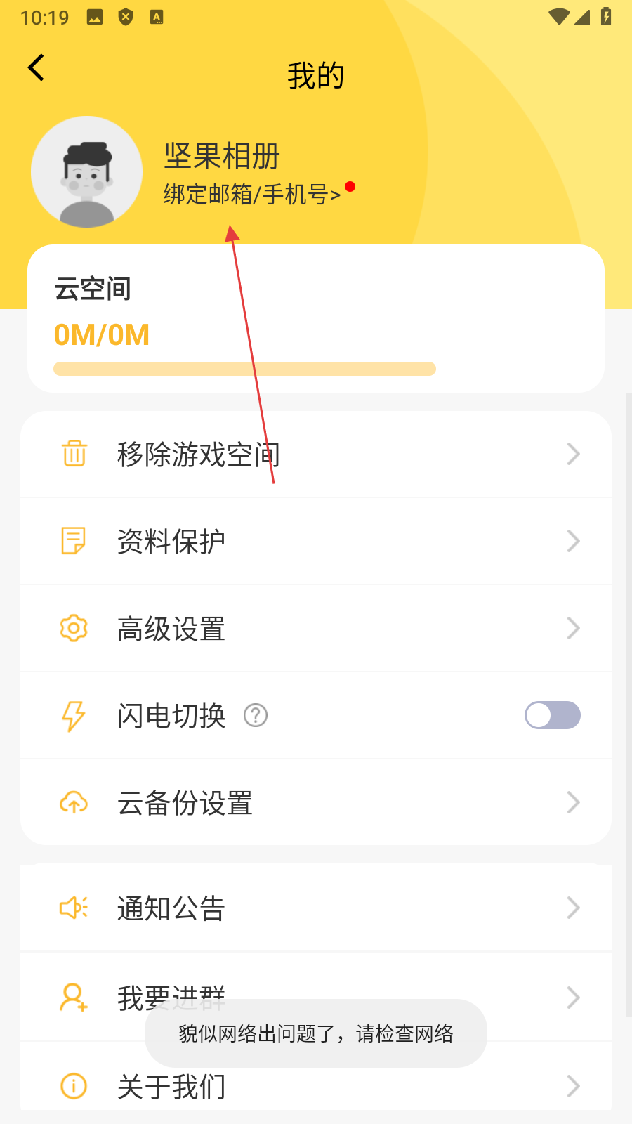 2、在个人页面,点击【绑定邮箱/手机号】,进入登录页面。