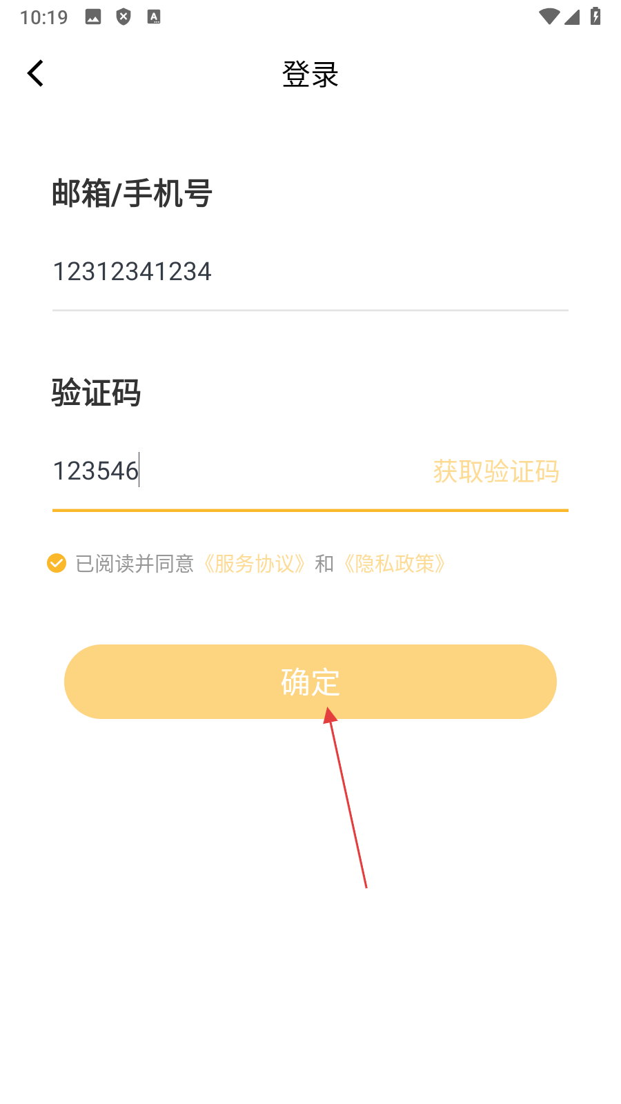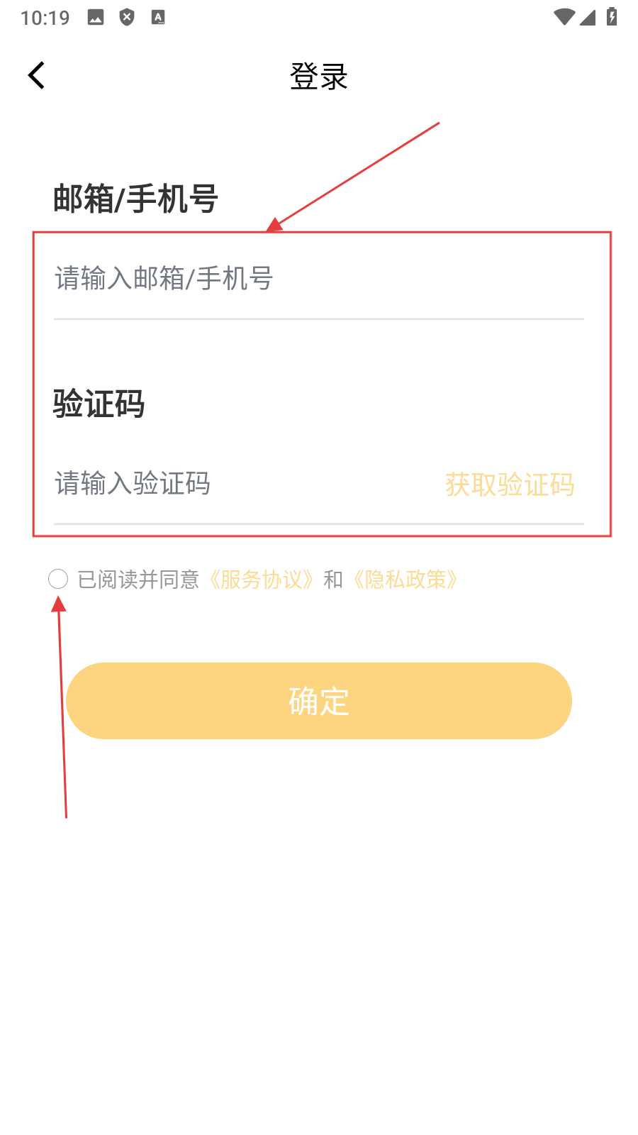 3、在登录页面输入【邮箱/手机号、验证码并勾选协议】,进入确定操作页面。