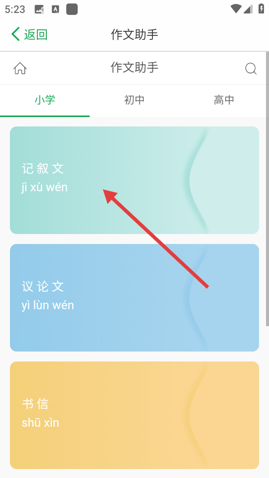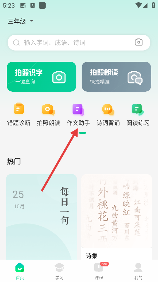 1、点击【作文助手】功能入口,进入作文辅助模块。