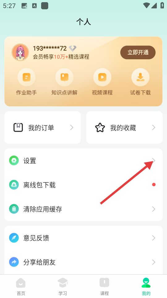 1、在个人页面中,点击【设置】选项进入设置界面。