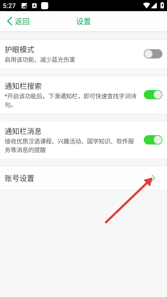 2、在设置界面,点击【账号设置】选项进入账号管理页面。