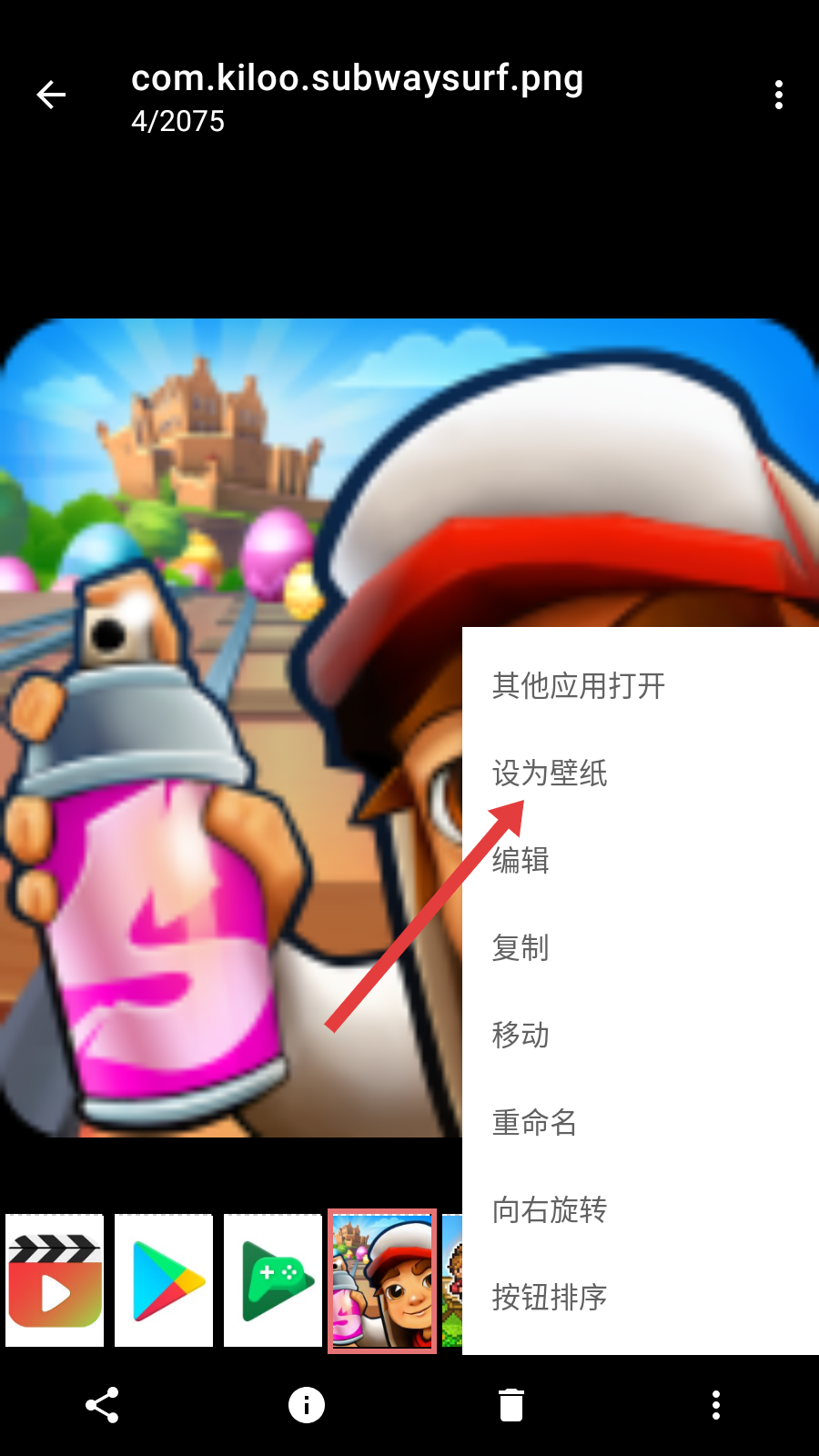 4、在功能选择框,点击【设为壁纸】,即可完成图片设为背景图操作。