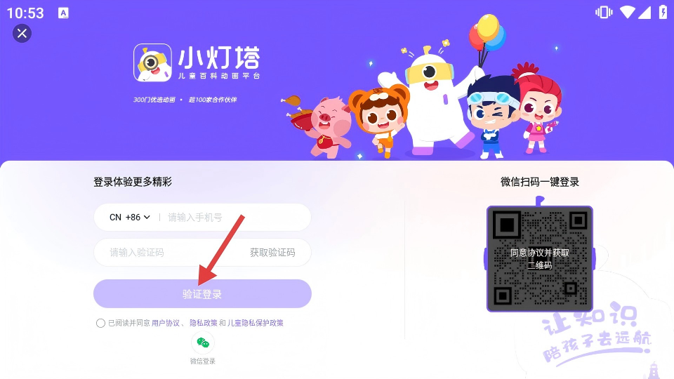 4、在登录页面输入【手机号】,获取并输入【验证码】,勾选同意相关协议后点击【验证登录】,完成课程购买操作。