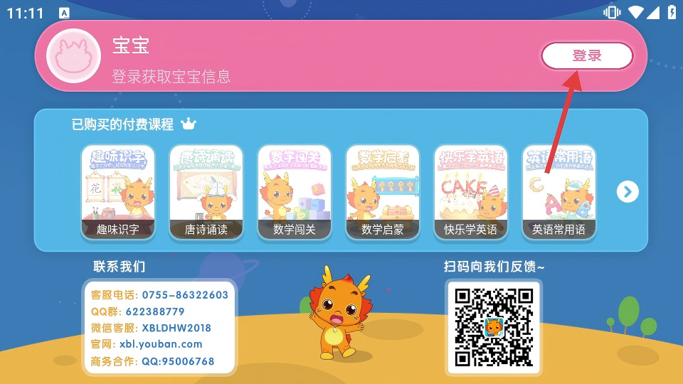 4、用微信扫描二维码,完成小伴龙动画屋的账号登录操作。