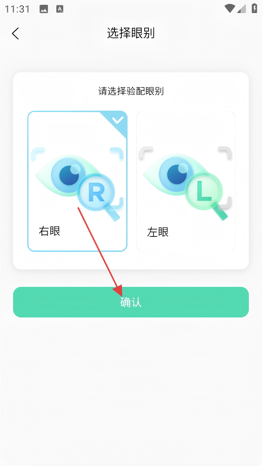 2、在选择眼别页面选择验配眼别,点击【确认】。