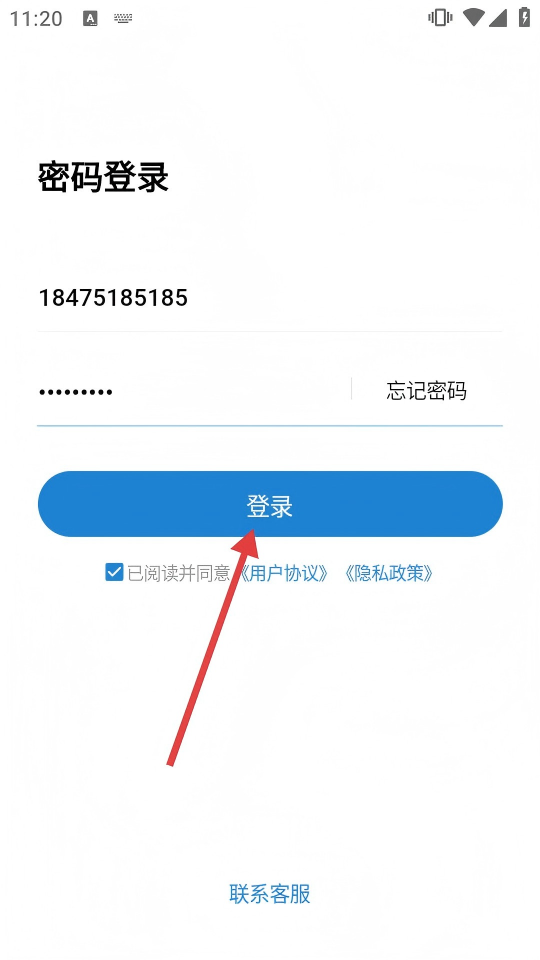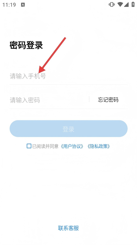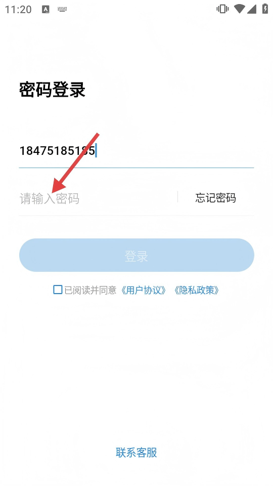 1、在隐私政策弹窗中点击【同意】,进入密码登录页面。