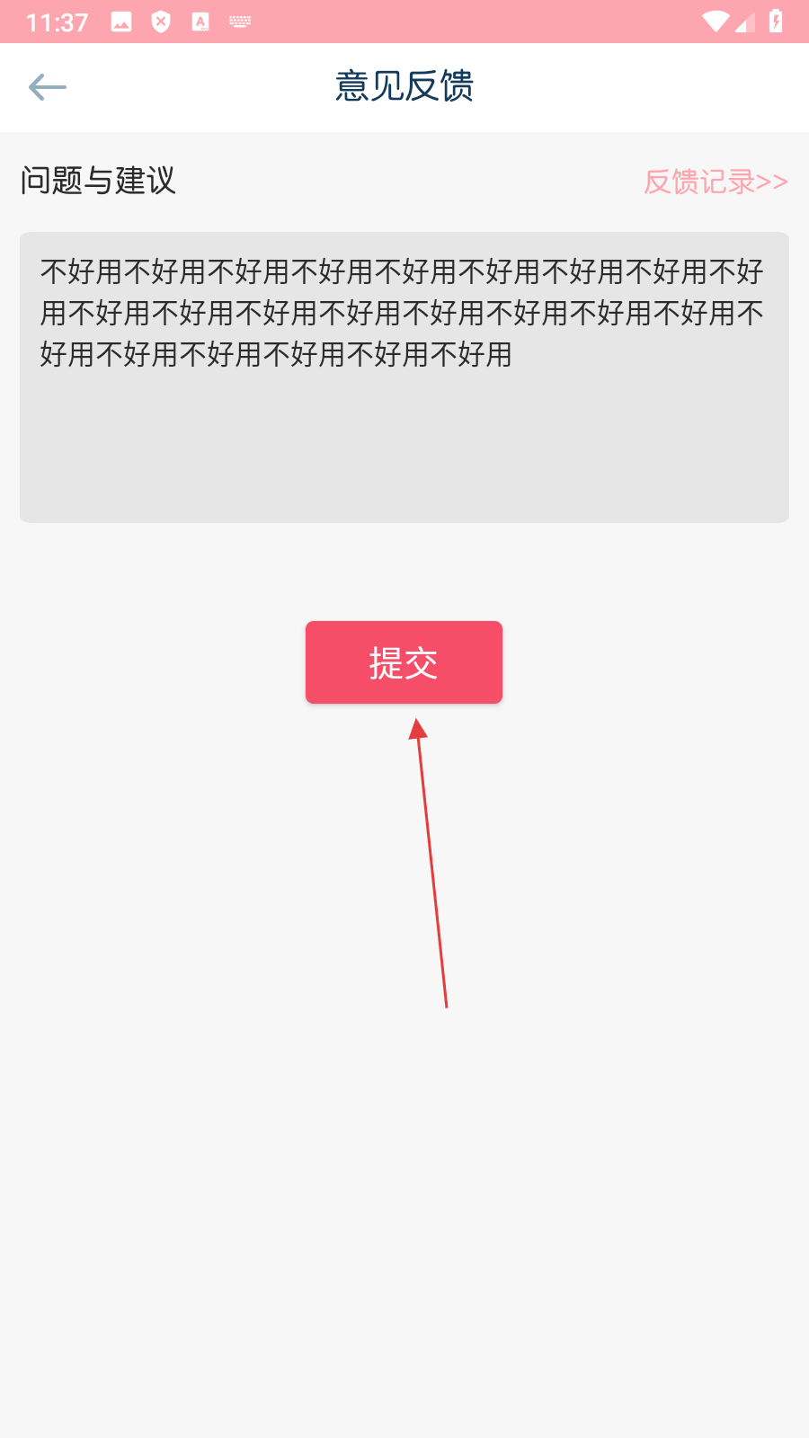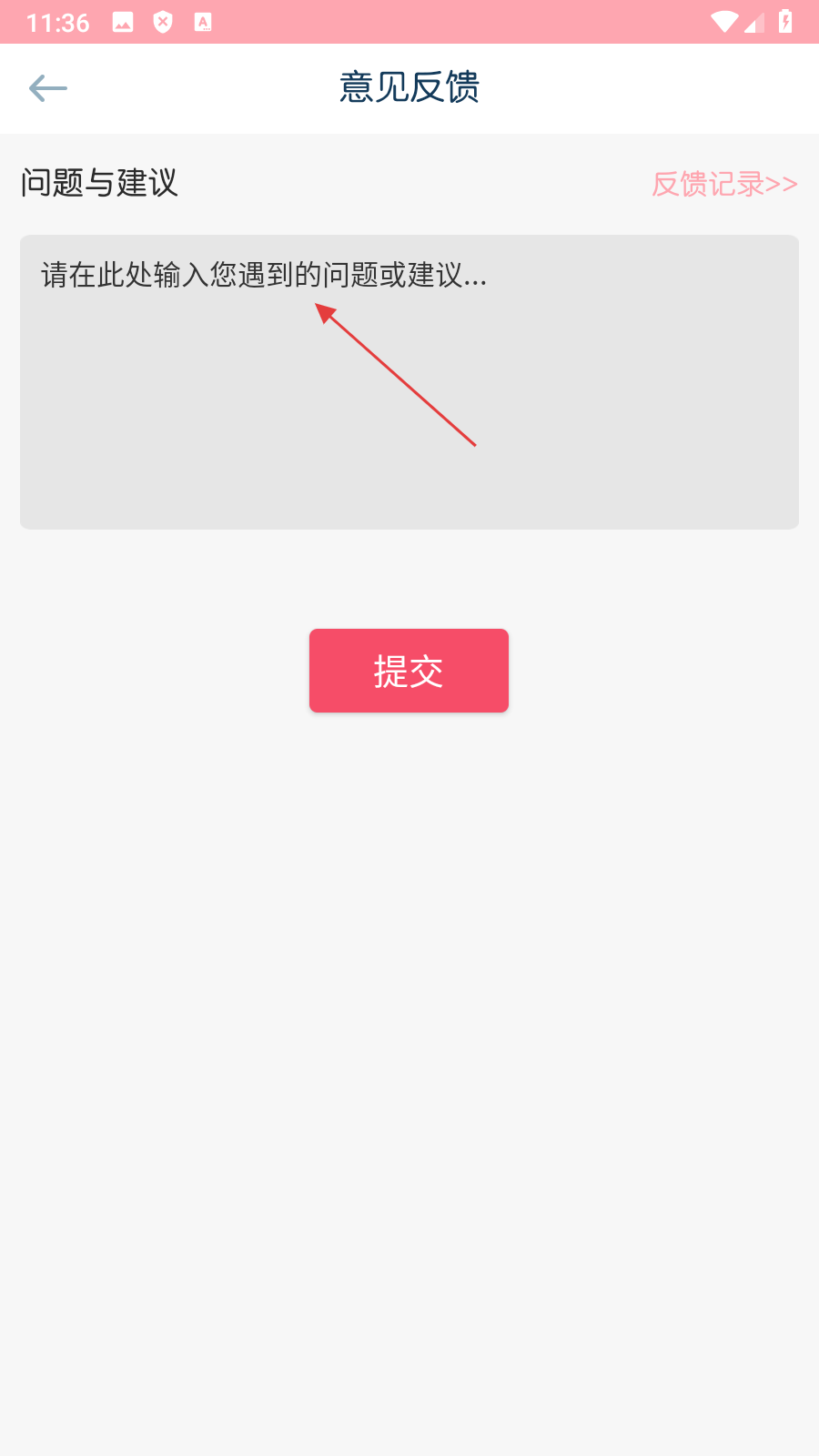 3、在意见反馈页面【输入遇到的问题或建议】,进入提交准备页面。