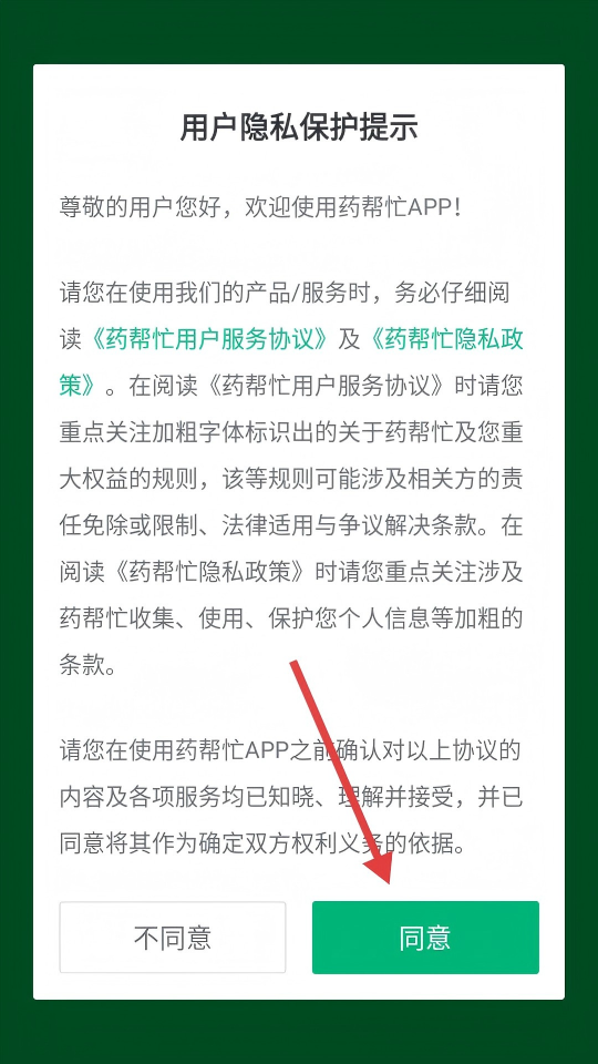 1、在用户隐私保护提示弹窗中点击【同意】,进入登录页面。