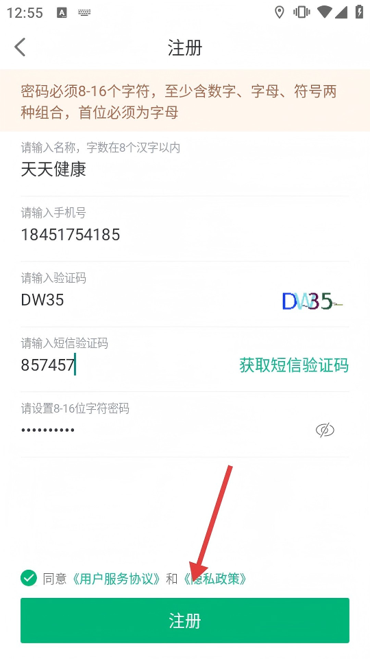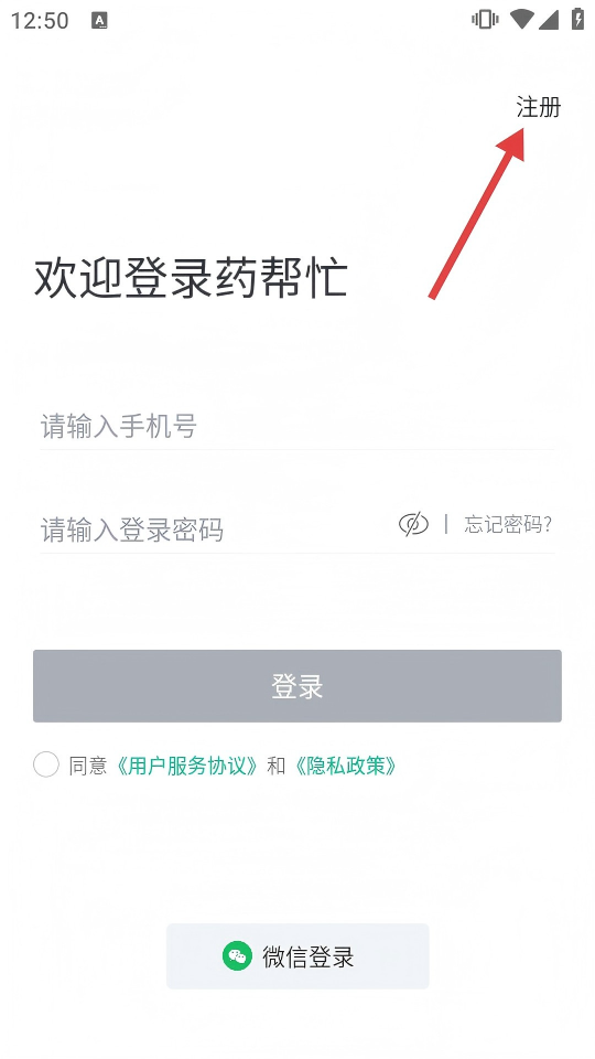 4、勾选同意《用户服务协议》和《隐私政策》后点击【注册】,完成药帮忙APP的注册操作。