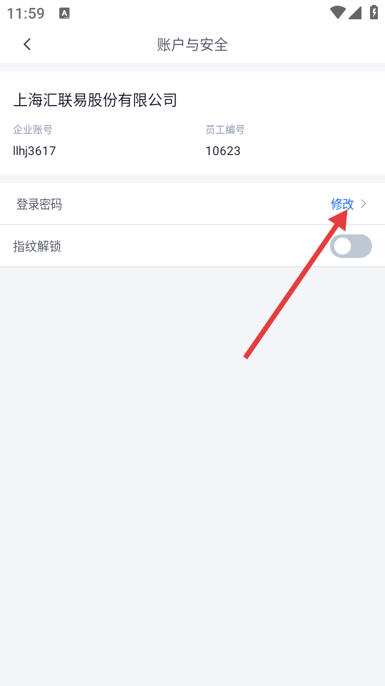 4、在账户与安全页面,点击【登录密码】后的“修改”按钮,可进行密码修改操作。