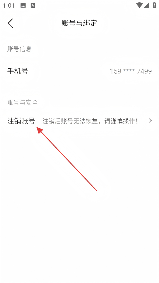 4、在账号与绑定页面点击【注销账号】选项,即可进行账号注销操作。