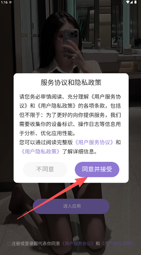 1、首次启动软件时,在协议弹窗中点击“同意并接受”进入应用主界面。