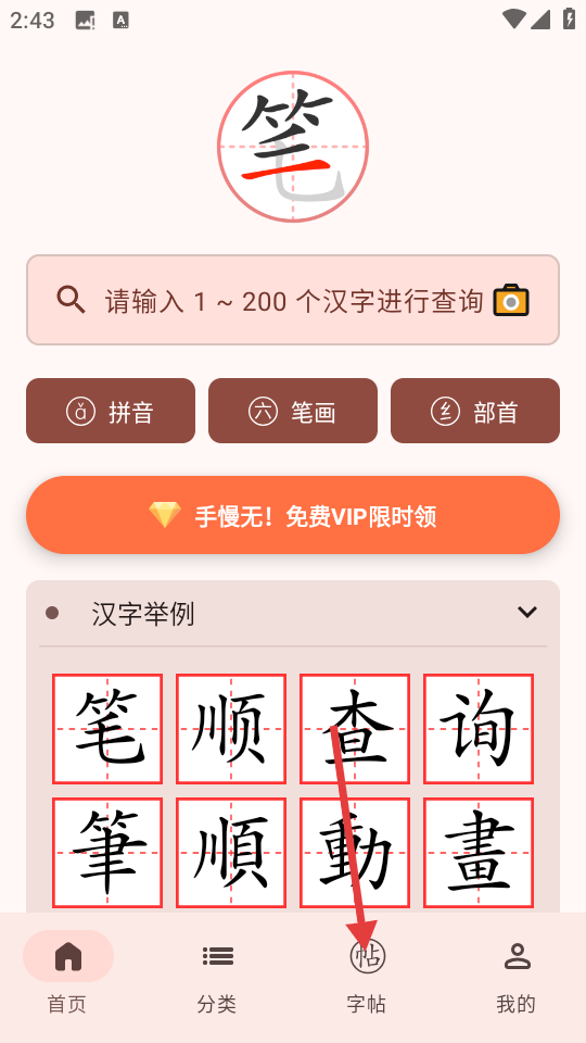 1、点击底部【字帖】按钮,进入字帖选择界面。