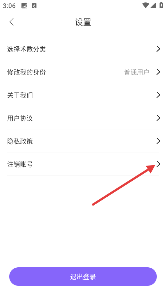 2、在设置界面,点击【注销账号】选项,进入注销账号页面。
